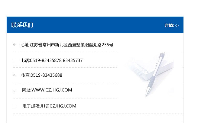 地址:常州市新北區(qū)友邦商務大廈1幢16、17層  電話:0519-85101652  傳真:0519-85112595  郵編:213022  網址:www.cz-jiayue_cn.szesp.com  郵箱:xiajifengaa@163.com
